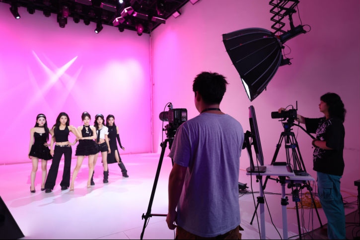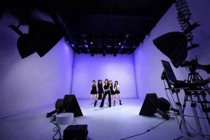 麦浪传媒旗下女团直播间采用当下流行的白棚直播间