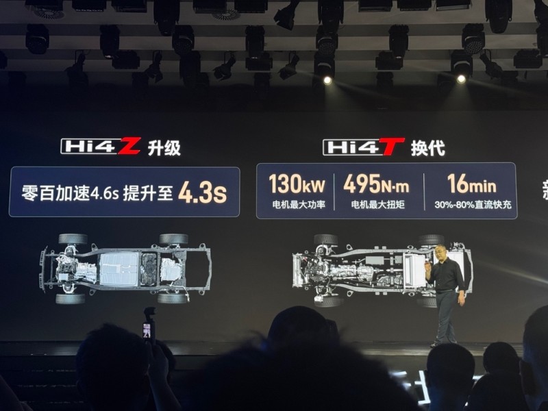 Hi4-Z版本主打泛越野属性,搭载2.0T发动机+双电机+3挡DHT变速箱的组合,系统的综合功率为645千瓦,WLTC工况下的纯电续航里程201km。