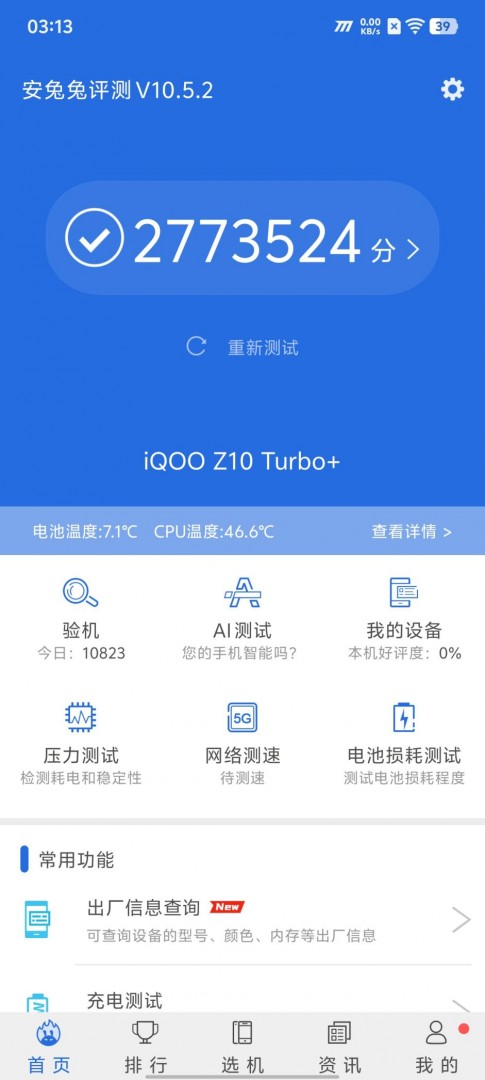 在安兔兔测试中,iQOO Z10 Turbo+的综合跑分超过2773524万分,这一成绩在同价位手机中处于领先地位,充分证明了天玑9400+ + LPDDR5X + UFS 4.1这套组合的硬实力。